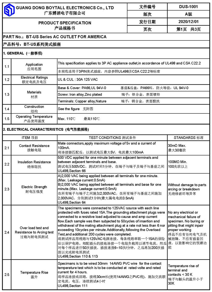 Your current location > Home > Product list- American standard socket series - BT-US4(C1)